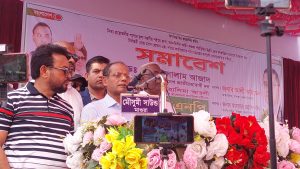 প্রধান অতিথির বক্তব্য বলেন অবিলম্বে অতি দ্রুত নির্বাচনের মাধ্যমে সরকার গঠন, নিত্য প্রয়োজনীয় পণ্যের মূল্য সহনীয় রাখা, অবনতিশীল আইন-শৃঙ্খলা পরিস্থিতির উন্নতি, দ্রুত গণতান্ত্রিক যাত্রাপথে উত্তরণের জন্য নির্বাচনী রোড ম্যাপ ঘোষণা এবং পতিত ফ্যাসিবাদের নানা চক্রান্তের অপচেষ্টা মোকাবেলার জন্য সবাইকে ঐক্যবদ্ধ হয়ে কাজ করার আহবান জানান প্রধান অতিথি তার বক্তব্য।